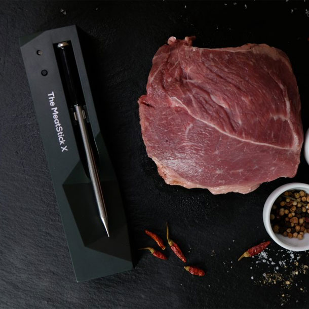 The MeatStick X er et trådløst stegetermometer. Her er der ingen ledninger af nogen art, hvilket bl.a. gør den helt perfekt til mad på rotisseri – nu kan grillkyllingen aldrig blive viklet ind i irriterende ledninger, mens den snurrer. Termometeret benytter sig af Bluetooth, så det eneste du skal bruge er din telefon, iPad eller anden smart-enhed, hvorefter The MeatStick automatisk tilkobler sig din iPhone eller anden type telefon. Der kræves altså ingen manuel parring; det eneste du skal sørge for, er at have din Bluetooth slået til – og du kan tilmed overvåge en probe på flere enheder samtidig.
