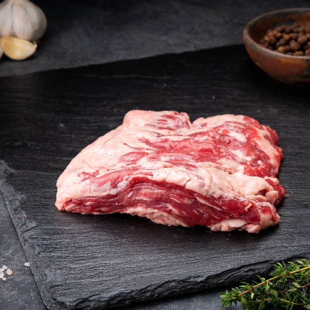 Tag smagen af amerikansk steakhouse med hjem – Outside Skirt er en sjælden udskæring, som du nu kan opleve på din egen tallerken. Kødet er mørt, saftigt og fyldt med dyb, rund smag, hvilket gør det til en fryd for enhver kødelsker. Med sin karakteristiske struktur og flotte marmorering passer den til både klassiske og kreative retter, hvor kødet virkelig kommer til sin ret.