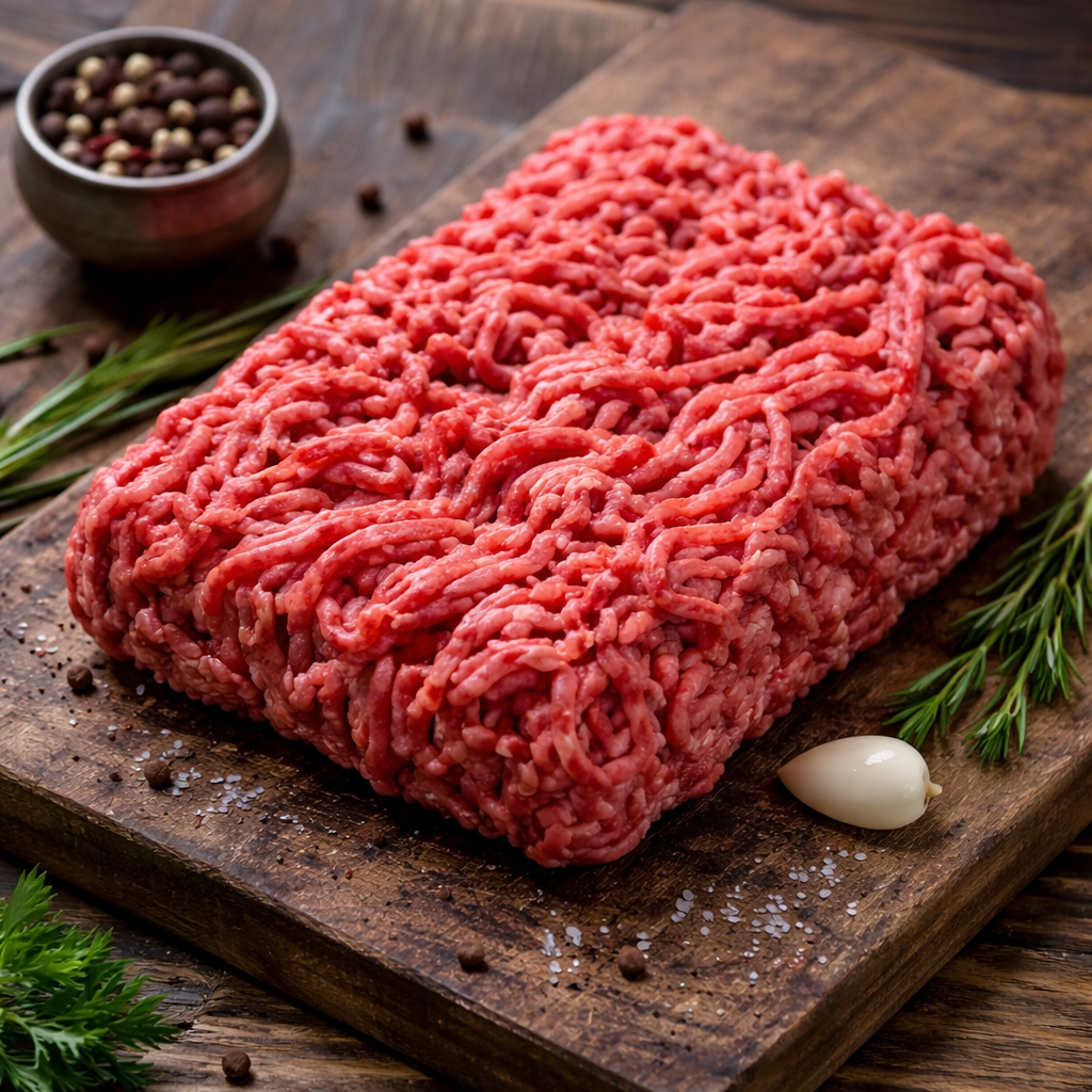 Vores hakket oksekød er fremstillet af 100% dansk oksekødt med et fedtindhold på 10-12%